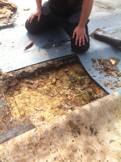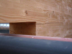 Dachschalung weggefault nach 5 Jahren. Ursache beim Innenausbau falsche Folie verwendet.