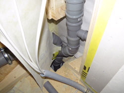 Außenwand eines Fertighauses in Holzrahmenbau - Hauptsache man kommt zum Abfluss